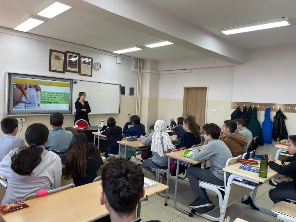 Rehber Öğretmenimiz Cansu SÜRÜL tarafından 8. sınıf öğrencilerimize yönelik Sınav Kaygısı ve Baş Etme Ylları ile ilgili seminer düzenlendi.